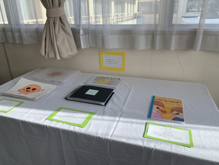 人間発達学科4年生による手作り絵本の展示会が図書館2階ロビーで開催されています。